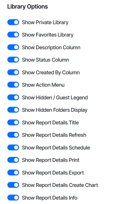 Enable/Disable Library Parts: Click the appropriate options so that only specific users or groups see certain library features.