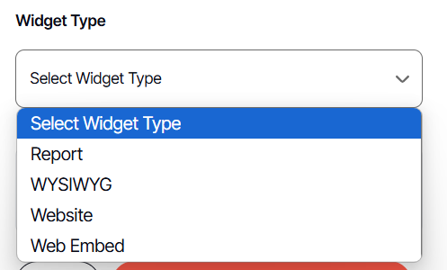 2. Next, select the desired widget type from the following options: