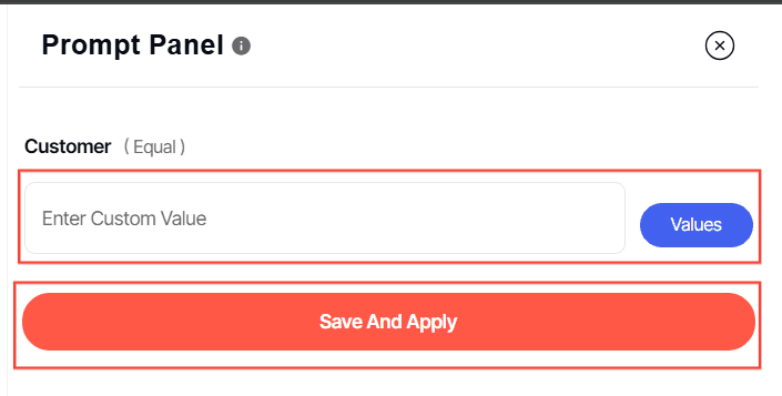 5. It is best to choose Custom Value in the drop-down menu of your chosen operator. This gives you an option to choose when the prompt appears in the report.