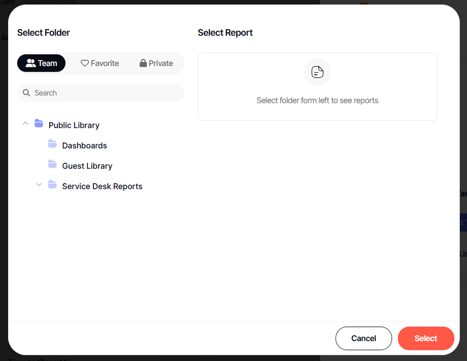 3. Select the desired report. The report selected will become the values shown at the beginning of running your report.