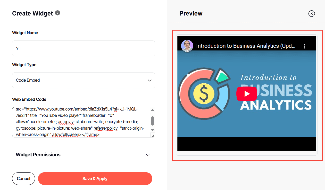 A pop-up on the right-side will appear where you can configure the widget you want to add.