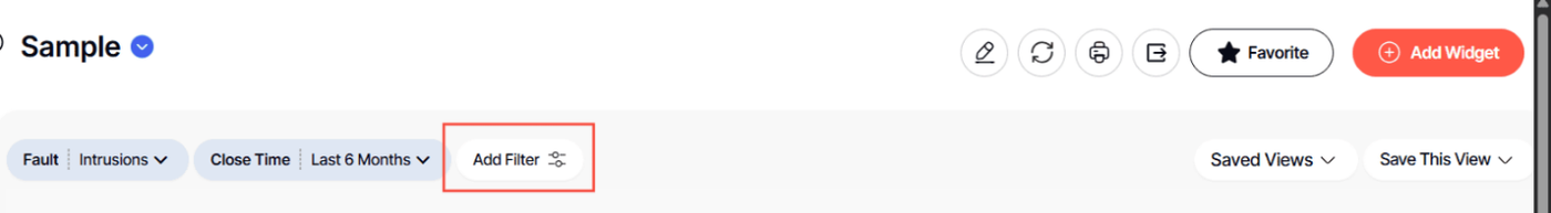 1. Click on Add Filter, located in the filter bar region of your dashboard.