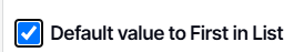 8. You can select the arrangement of data by ticking off Default value to First In List
