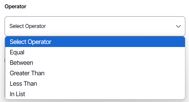6. Under Operator, you can choose BETWEEN and EQUAL.