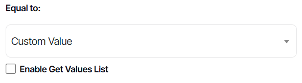1. To get a dropdown list filter under EQUAL operator, choose Custom Values