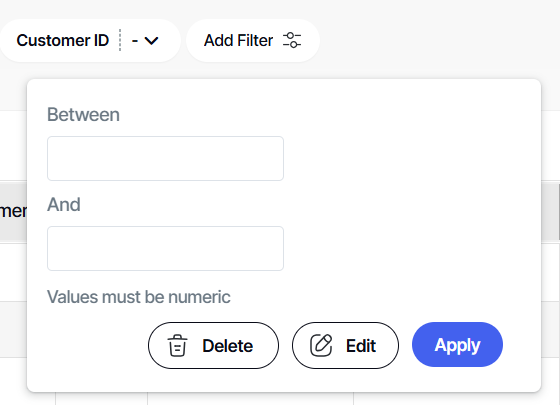 In this guide, we'll focus on crafting numeric-based filters. These filters are often used to segment data based on numeric values such as price, identification numbers, profit, etc.