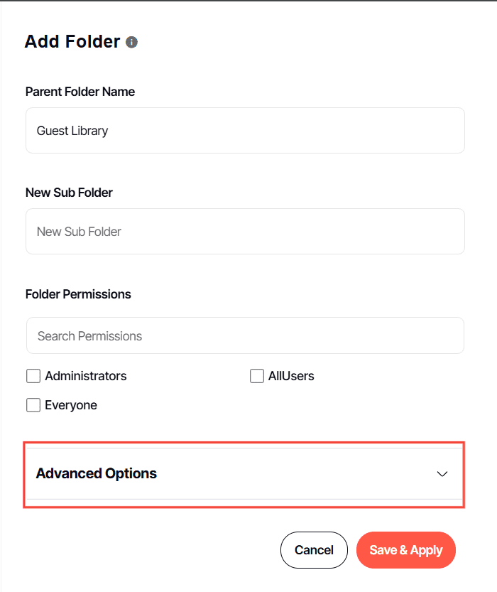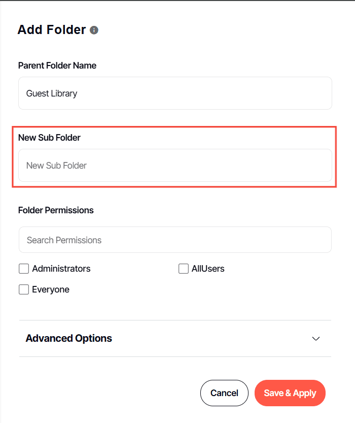 Click inside the Guest Library Folder and choose the option to add a new folder—this will be your new sub-folder for guests.