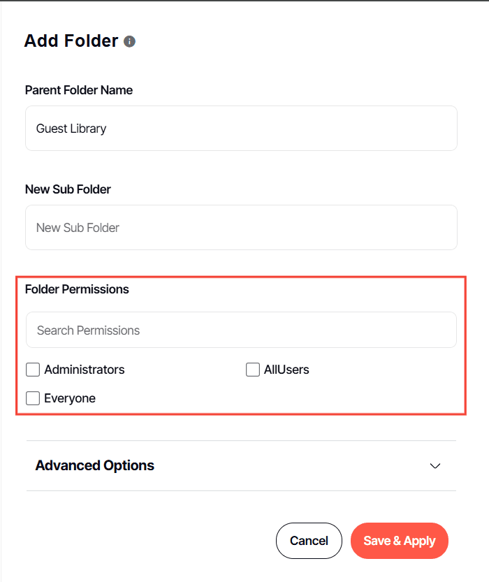 Note: Remember, if you start with a folder that guests can't see and you add a new guest folder inside it, guests won't be able to see this new folder either. Make sure you're adding your guest sub-folders directly inside the root-level Guest Library Folder to keep them visible for guests.