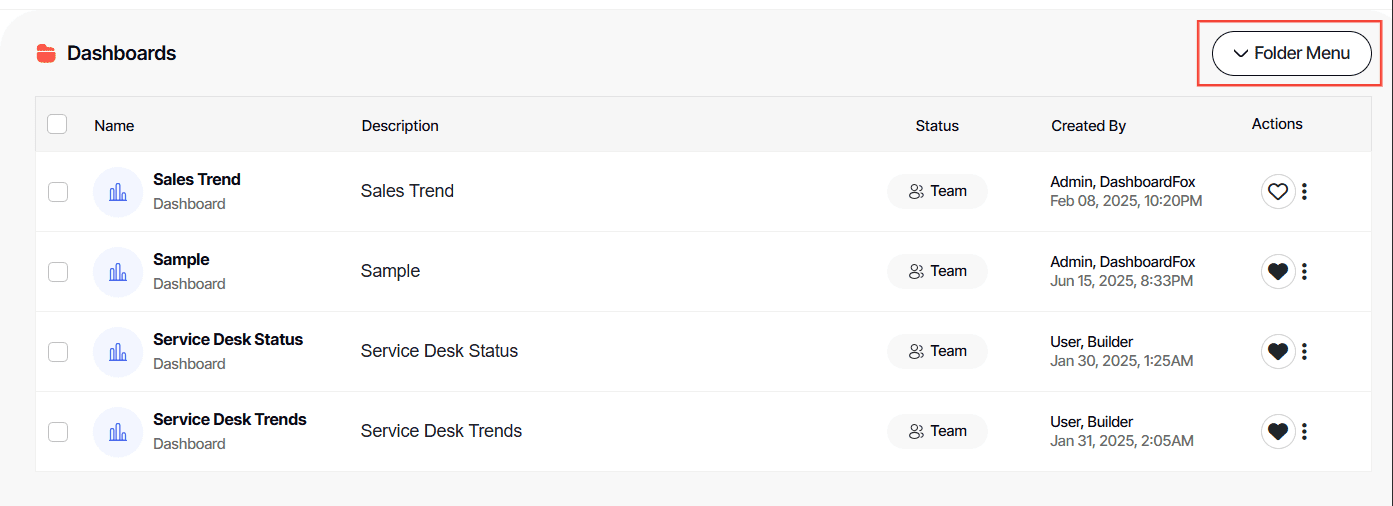 - Hidden: Hidden folders offer a control mechanism for report access. Users with 'view' permissions cannot see these folders but can execute reports if they have the necessary rights. Users with 'modify' or higher permissions can see hidden folders.