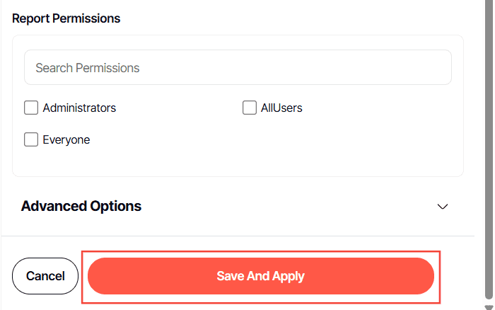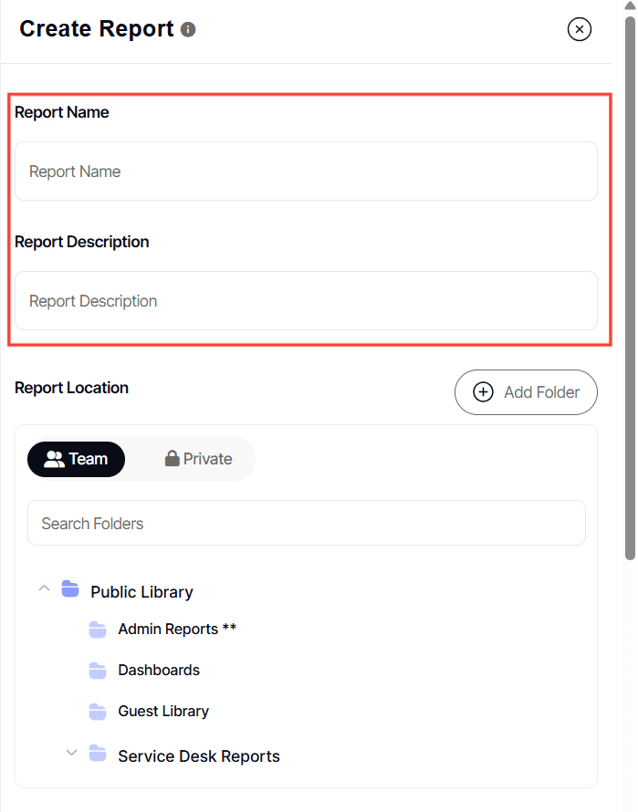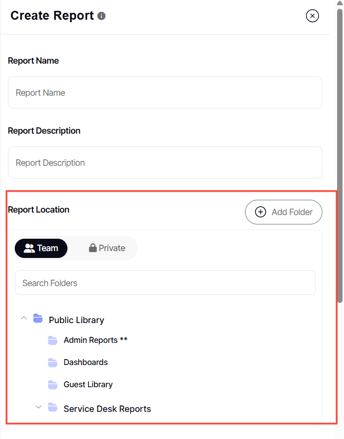 3. Choose the folder where your report will be stored. If you haven't set specific permissions, the report will follow the folder's permissions.