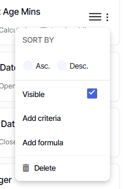 Add Criteria: Defines data filters for numbers, dates, or times.