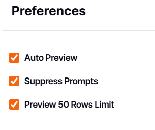 - Preview 50 Rows Limit : This feature is set by default to load only 50 records at once, protecting the database from heavy queries.