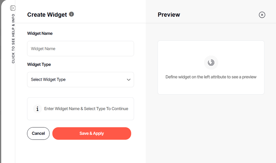 A pop-up on the right-side will appear where you can configure the widget you want to add.