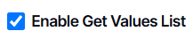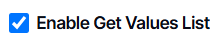 2. By default, the Enable Get Values List is checked