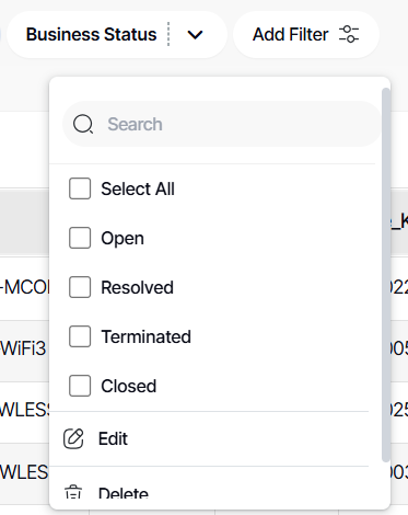 5. For an IN LIST filter, this will be the filter interface shown in the dashboard.