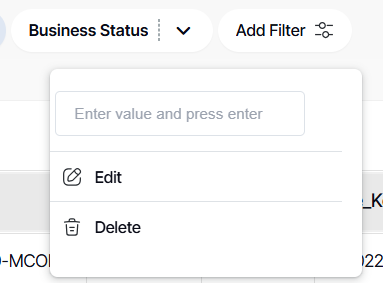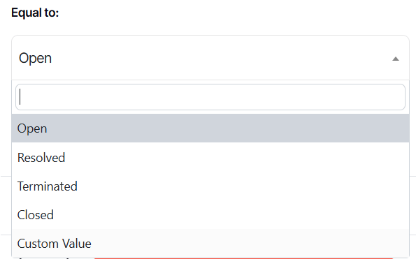 5. For an EQUAL filter, this will be the filter interface shown in the dashboard.