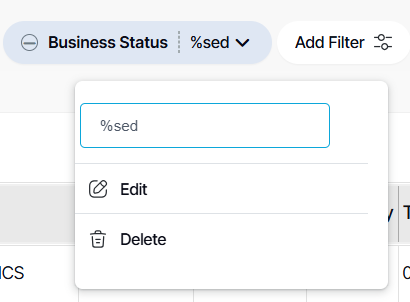 TIP: When using a search box filter, you can use % when entering a value