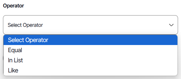 6. In a Text Filter Type, under Operator, you can choose among EQUAL, IN LIST, or LIKE. Here is how they differ: