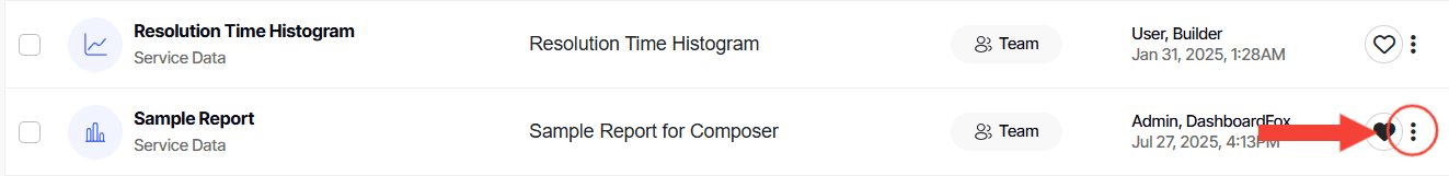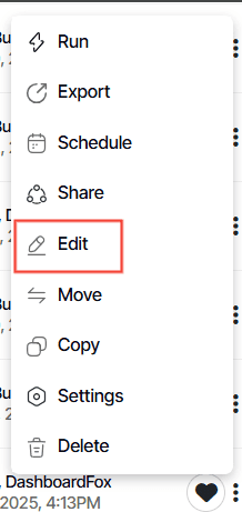 To verify whether you have these permissions, click the three dots button associated with the report to reveal the action menu. If you see the Edit option listed, you have the necessary modify permissions for that report.