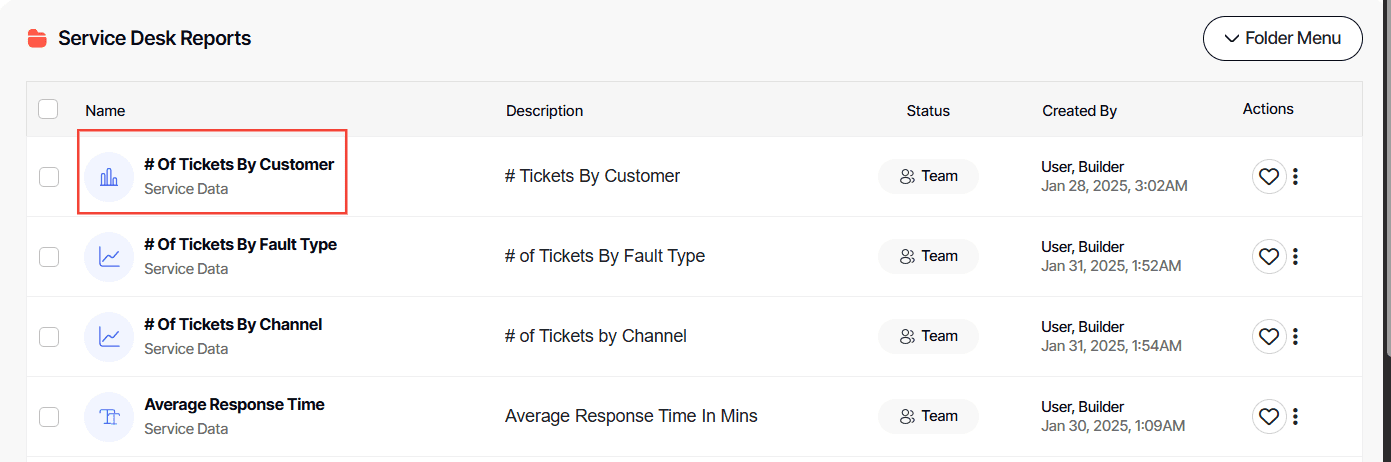 5. Click the three dots arrow at the end of a report.