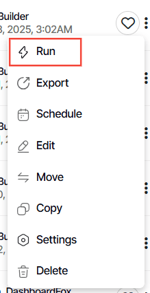 Here is the 2nd method to use when exporting a report. We use the Run option found in the action menu.