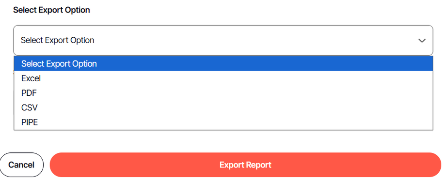 4. On the Export Report window, select the export option.