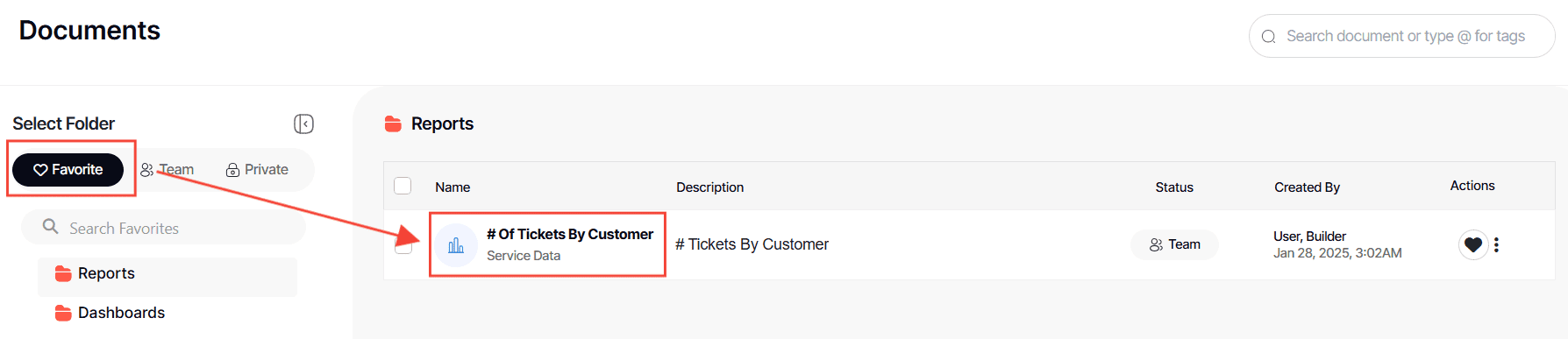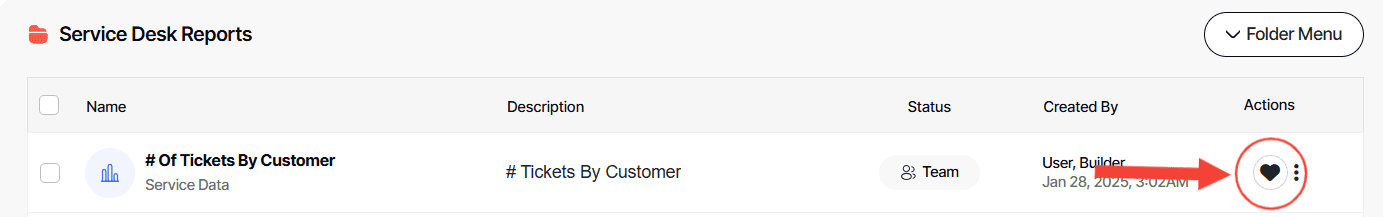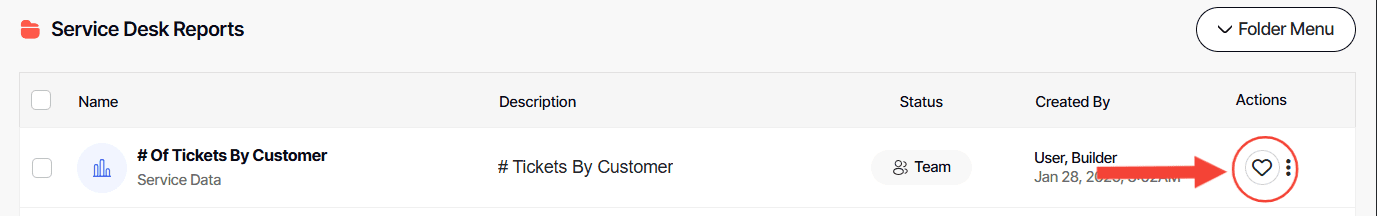 4. Locate the report or dashboard you wish to favorite, and click on the heart icon beside the three dots button