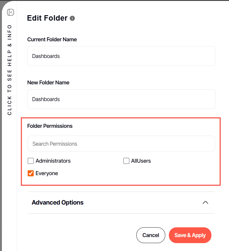 To modify library folder permissions, your user account must belong to a group with modify permissions for the desired folder. Your user role could be View Only, Modify, Delete, or Admin, as assigned by the system administrator during the account setup.